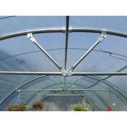Cette serre de jardin tunnel qualité professionnelle de 48M2 possède une hauteur au faîtage de 2.52 m. Elle a une paroi verticale droite d'une hauteur d'1.46 m. L'écartement entre chaque cintre est d'1.50 M.